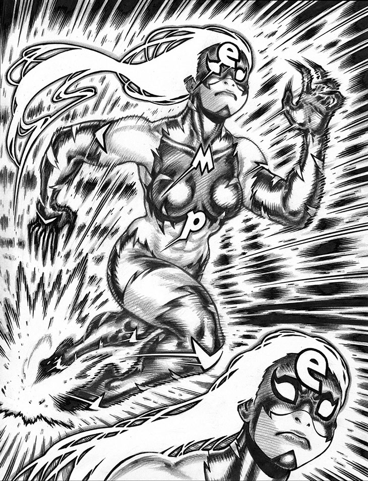 As noted yesterday, I burned through the last of my supply of very specific 2mm pencil leads (5B Prismacolor Turquoise leads produced circa 2010-15) used to draw Empowered as I finished this volume. Years later, I found an even softer lead that enabled me to still draw loose, rough sketches, but my oft-ailing drawing hand soon failed me every time I tried to produce finished, detailed graphite rendering like you see here. Alas, seems to the case that my arm just couldn't repeat the Empowered workflow again even if I found a viable pencil lead.